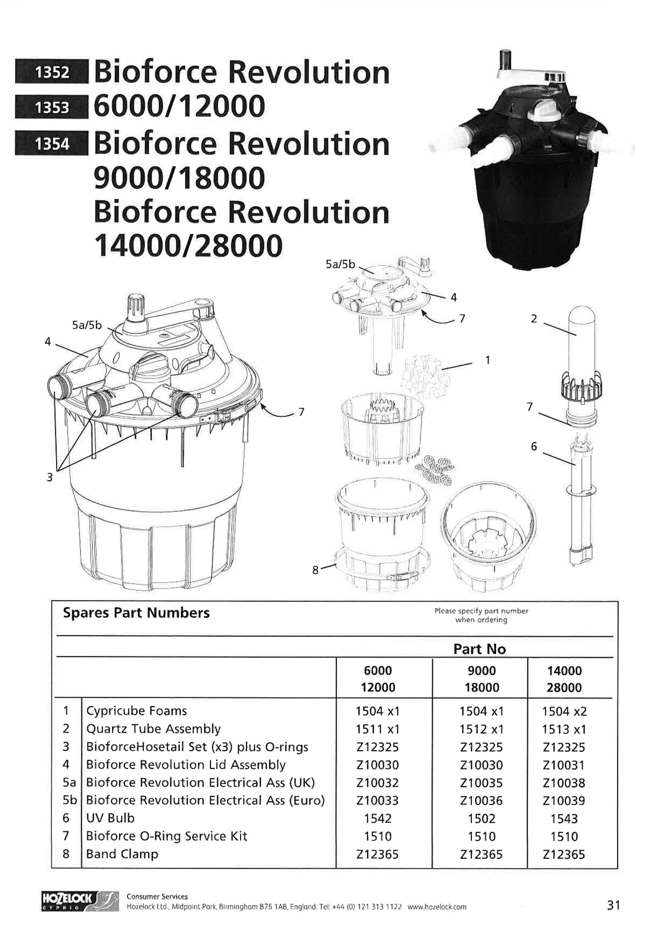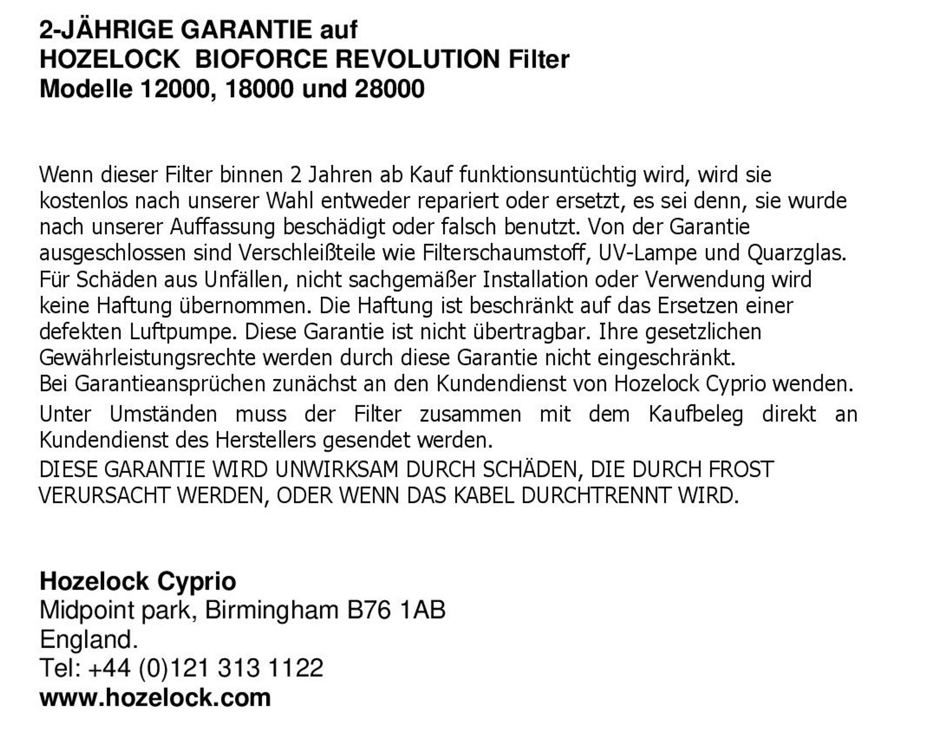 2-JÄHRIGE GARANTIE auf HOZELOCK BIOFORCE REVOLUTION Filter Modelle 12000, 18000 und 28000