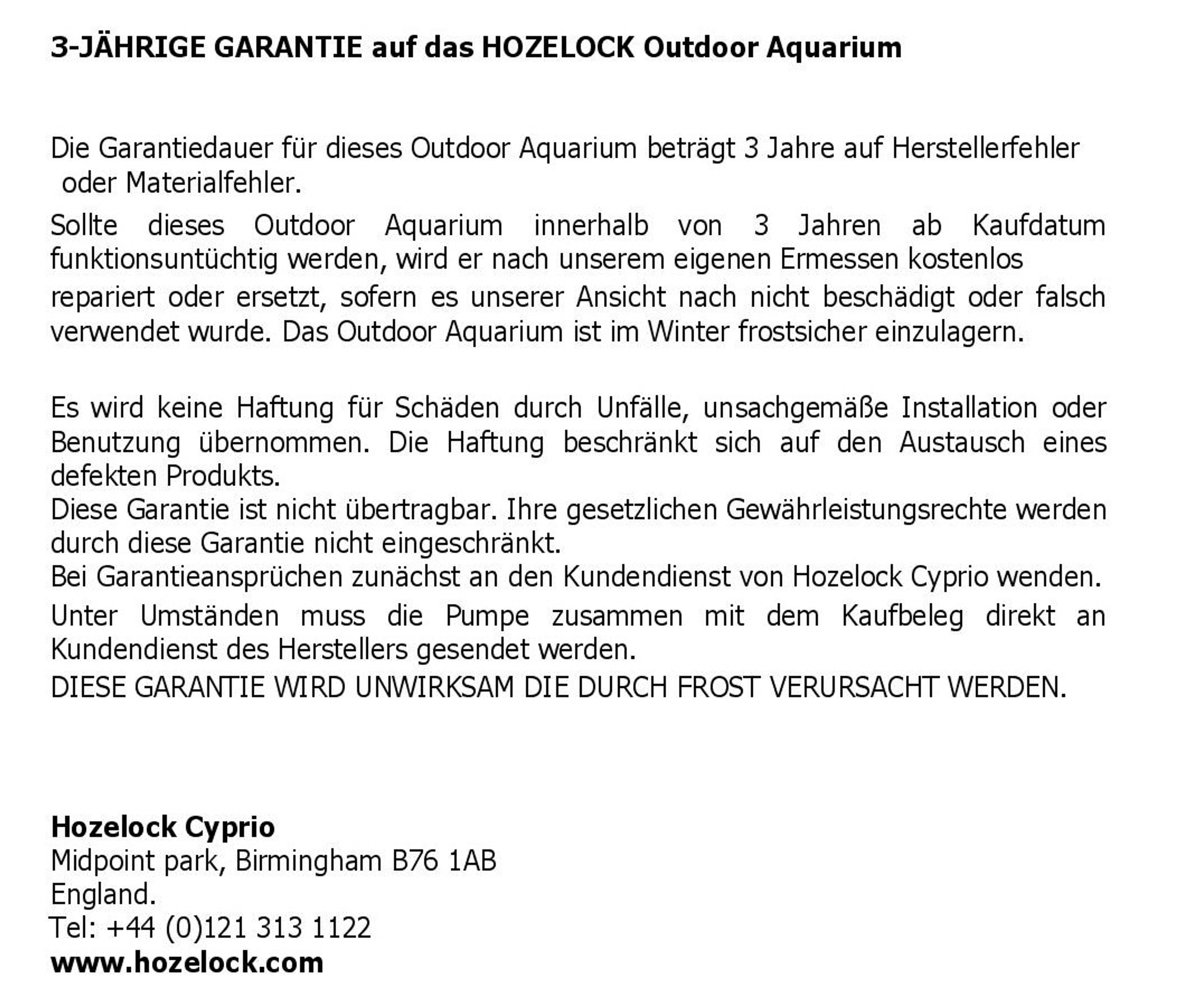 3-JÄHRIGE GARANTIE auf das HOZELOCK Outdoor Aquarium